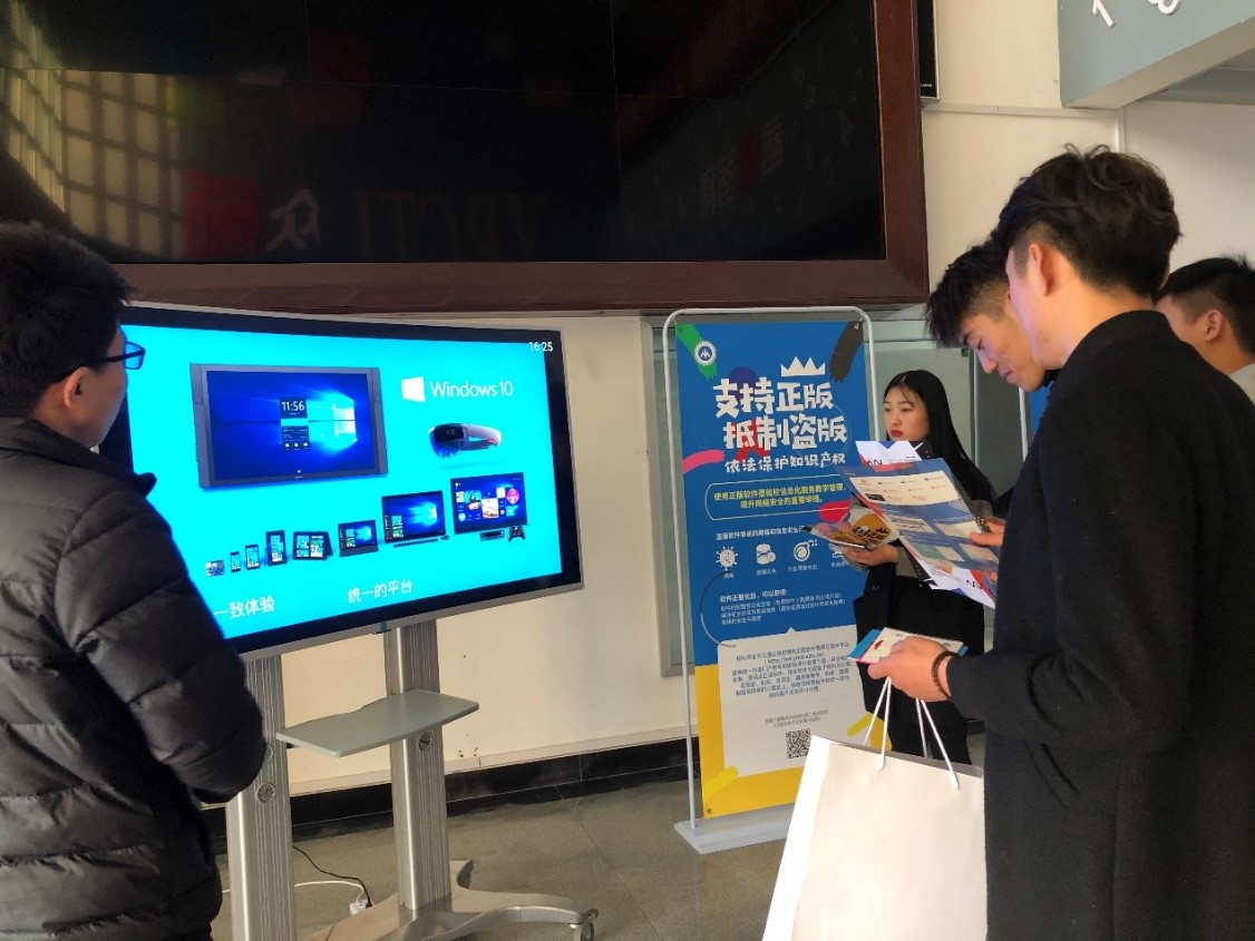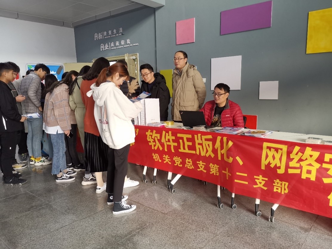 按照“不忘初心、牢记使命”主题活动的安排,信息化管理办公室结合自身专业优势,以软件正版化和网络安全宣传为切入点服务于全校师生,于11月19日下午在五号实训楼一楼大厅开展了软件正版化和网络安全宣传活动。