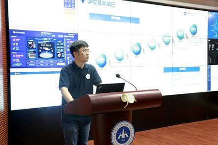 会议第三项由我校信息化管理办公室(大数据管理中心)主任李响从信息化建设介绍、特色亮点、自评总结和不足与改进四个方面对我校的信息化建设工作进行汇报。汇报中李主任首先对我校的基本情况以及智慧校园建设进度进行讲解。我校有较完善的制度保障体系;科学的智能校园总体框架;在基础设施体系方面有智能校园硬件的有力支撑;在安全防护体系方面有网络安全的全面保障;智能校园软件平台在学校内实现全面覆盖,并践行目标管理责任制,打造目标链和标准链,以及我们的制度管理系统、教师发展中心、学生发展中心、课程发展中心、专业发展中心、能源监控平台、辅导员十个一等系统和平台全面的支撑我校内部系统质量保障体系的运行、助力教学诊改。以及我校现有大量的信息化教学资源,包括智能考场、智能课堂、网上学习空间、录播教室、多媒体教室以及VR教室等,为师生提供良好的信息化教学环境。在信息化素养提升方面我们有整套的智慧校园视觉形象识别系统,还有一些列智慧校园宣传品以及各类智慧校园系统使用或明的手册、信息化工作简报以及对全校不同层面的教师进行信息化培训。李主任接着重点介绍了我校在信息化建设方面取得的成效,然后结合学校实际工作参照评估指标体系公布了我校的自评情况,最后对我校信息化建设的不足和需要改进的方向进行说明。