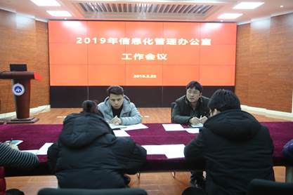 为了进一步传达校领导在2019年中层干部工作会议上的讲话精神以及具体安排部署本学期部门的各项工作。信息化管理办公室于2019年2月22日下午15:00在四号实训楼演播厅召开了2019年全体工作会议。