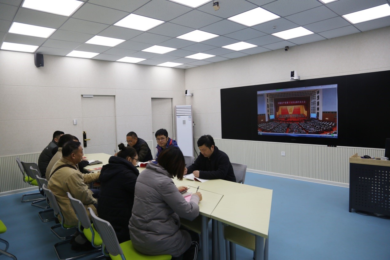 11月21日下午,机关党总支四支部在四号实训馆4408A录播教室召开学习十九大报告的专题会议,会议由党支部书记李响主持,组织全体党员观看了《党的十九大报告》视频,认真学习《党的十九大报告》辅导读本以及辅导百问等资料,李书记主要选取了《党的十九大报告学习辅导百问》中的“党的十九大主题是什么?”、“如何深刻领会习近平新时代中国特色社会主义思想的精神实质和丰富内涵?”等内容进行了领学,对全体党员提出了学习十九大精神的希望和要求,要求全体党员学会运用十九大精神指导我们的工作实践。会上还组织大家进行了讨论交流,相继发言畅谈学习十九大报告的心得体会。