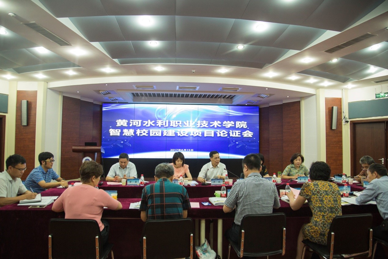 2017年6月15日,由河南省教育厅科技处组织的《黄河水利职业技术学院智慧校园项目建设论证会》在我校四号实训馆演播厅召开,省教育厅科技处处长孔繁士带领由河南工业大学网络教育管理中心主任付晓炎、河南科技大学网络信息中心主任王辉等11位专家组成的专家组一行对我校智慧校园建设项目进行论证和指导,会议由教育厅科技处调研员施晓春主持,我校党委书记许琰、党委副书记校长祝玉华、副校长焦爱萍、数字办主任李响出席了会议。
