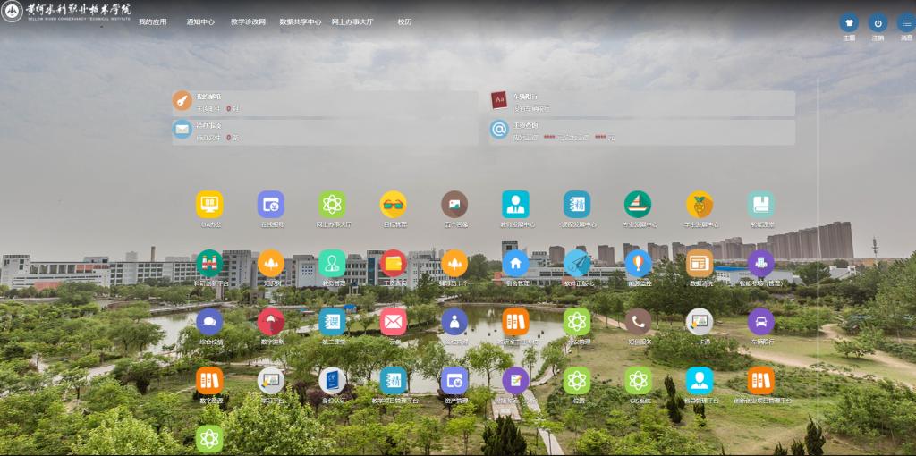 黄河水利职业技术学院信息门户是一个面向全体师生的个性化应用集成和数据信息整合平台,它为师生访问信息化校园的应用服务和有关信息提供了方便快捷的统一人口,系统拥有风格管理、页面设置、日程安排等友好而又灵活的个性化设置功能;并通过深入的应用集成,把日常师生最常用的电子邮件、OA系统、工资查询、虚拟校园、人事、学工、离校、档案、一卡通、科研、在线报账等系统整合在一起;随着校园信息化建设的不断深入,服务理念的不断深化,2016年改版后的“智慧校园信息门户”更加注重信息聚合、应用集成、服务集中,扩展了协同工作的功能。