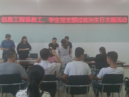 按照校党委和组织部要求,信息工程系教工、学生两个党支部于6月12日下午15:30在SX5508召开“做好‘五个一’,过好政治生日”主题党日活动,参加此次活动的有全体教职工党员和部分学生党员,活动由教工支部书记姜锐主持。