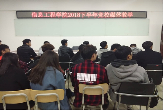 11月7日19点信息工程学院在SY5508会议室开展党校培训班媒体教学,全体培训班成员参加此次活动,会议由学生会组织部部长王俊辉主持。