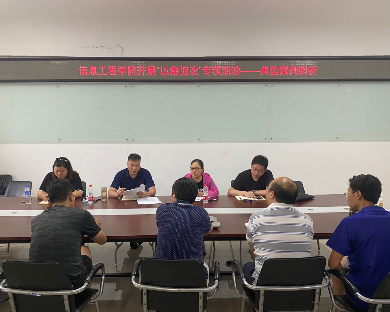 为深入贯彻习近平总书记关于“一体推进不敢腐不能腐不想腐”的重要论述,根据省纪委《关于在重点系统和领域开展以案促改的工作方案》部署要求,进一步巩固深化教育系统以案促改工作成效,强化权力监督制约,持续净化政治生态,根据校党委和学院关于开展“以案促改”工作方案要求,8月14日信息工程学院召开了“以案促改”工作专题会议。党总支书记罗朝峰、院长丁爱萍、党总支副书记李晓娟、副院长曾赟和全体科级干部参加了本次会议,会议由罗朝峰书记主持。