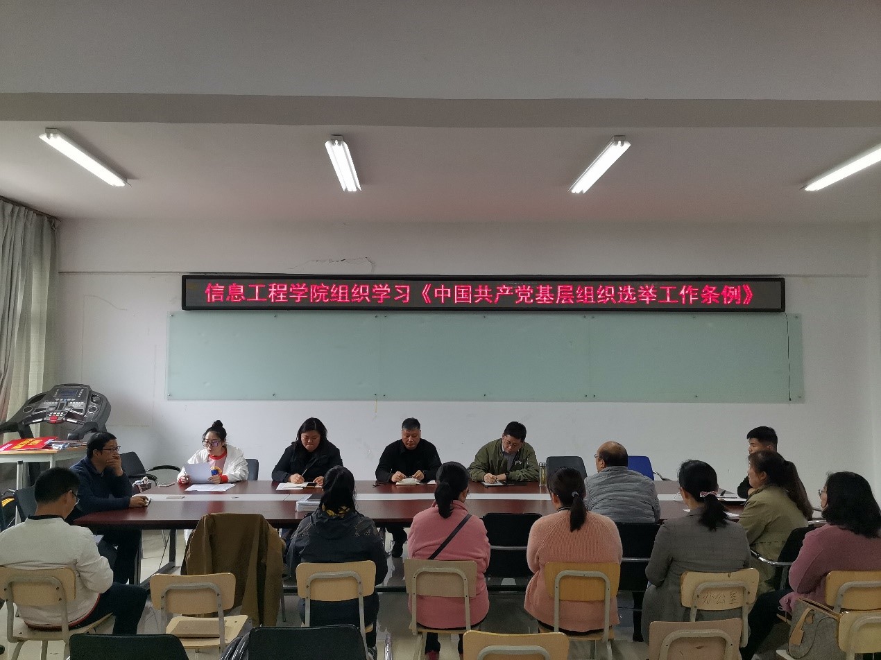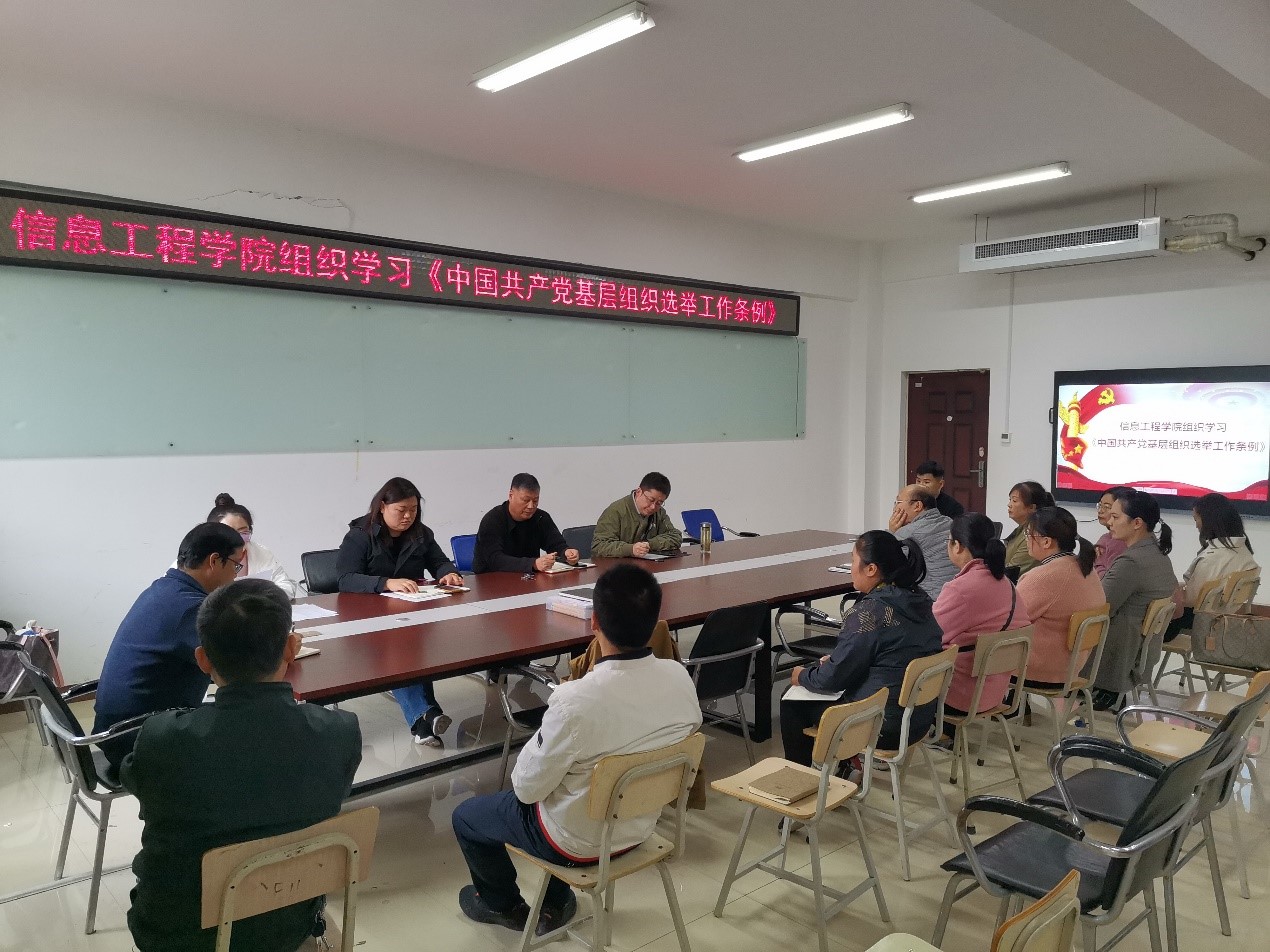 10月20日下午,信息工程学院组织全体教工在SY5508开展政治学习。本次会议由教工党支部书记杜鹃主持。