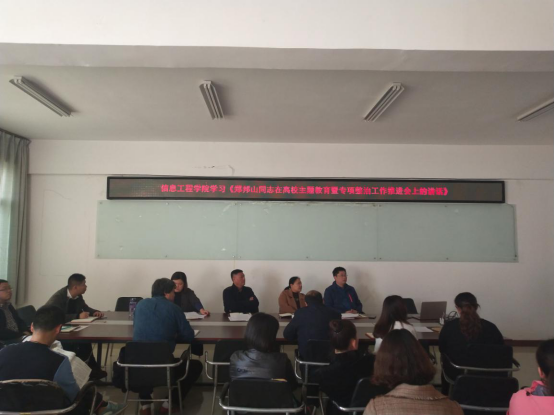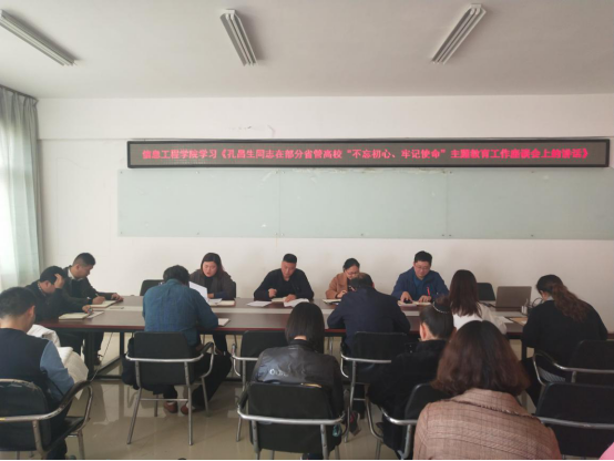 2019年11月12日下午信息工程学院在SY5508组织全体教职工开展“不忘初心、牢记使命”主题教育学习活动,此次会议由党总支书记罗朝峰主持。
