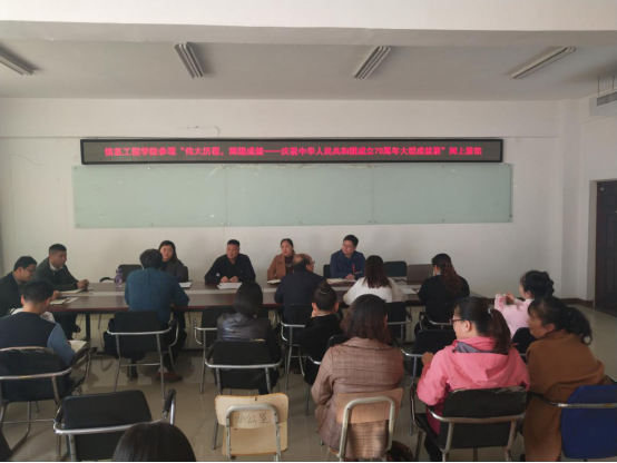 学习活动最后环节,组织全体教职工共同观看了网上展馆“伟大历程 辉煌成就——庆祝中华人民共和国成立70周年大型成就展”的相关学习视频。网上展馆里,一幅幅生动的图片,一件件珍贵的物品,展现了新中国成立70周年的伟大成就。通过视频和图片再现了党史、新中国史的相关知识。视频学习结束,全体教工为70十年改革开放中国取得的巨大发展成就感到自豪和骄傲,同志们纷纷表示要为学校“双高校”建设贡献力量,为助力河南振兴、中原更加出彩提供更好的人力人才资源保障。