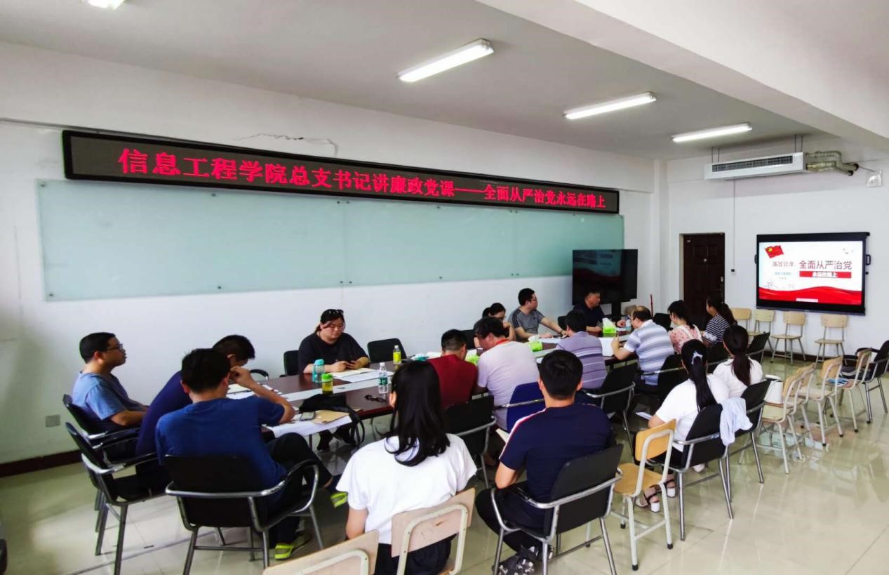 69日下午,信息工程学院党总支书记罗朝峰同志以“全面从严治党永远在路上”为主题,在SY5508为我院全体教工党员讲授了一堂廉政专题党课。