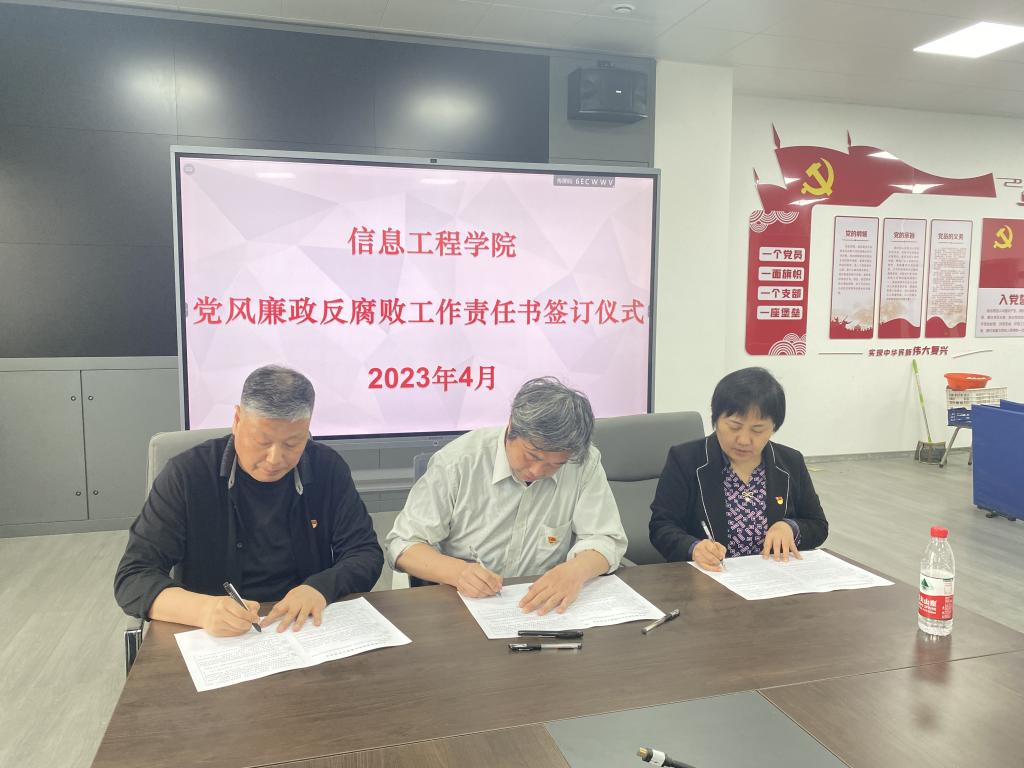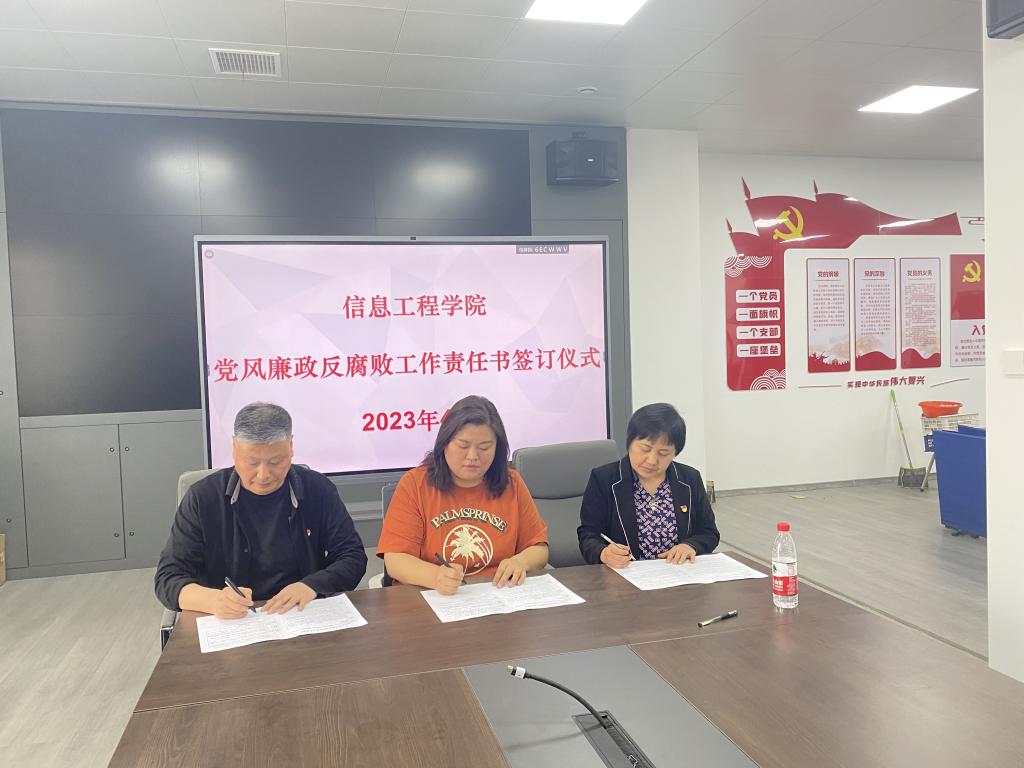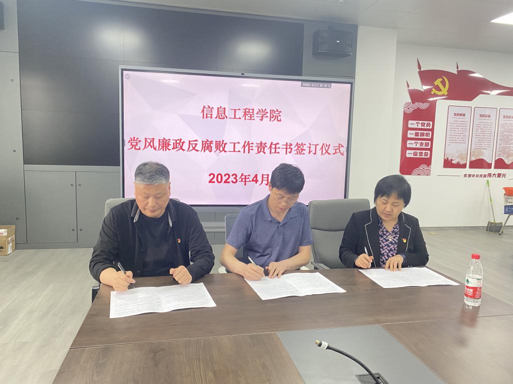 4月18日下午,信息工程学院在sy4426召开党风廉政建设反腐败工作责任书签订大会。院领导班子及全体科级干部参加了本次大会,大会由学院党总支书记罗朝峰主持。