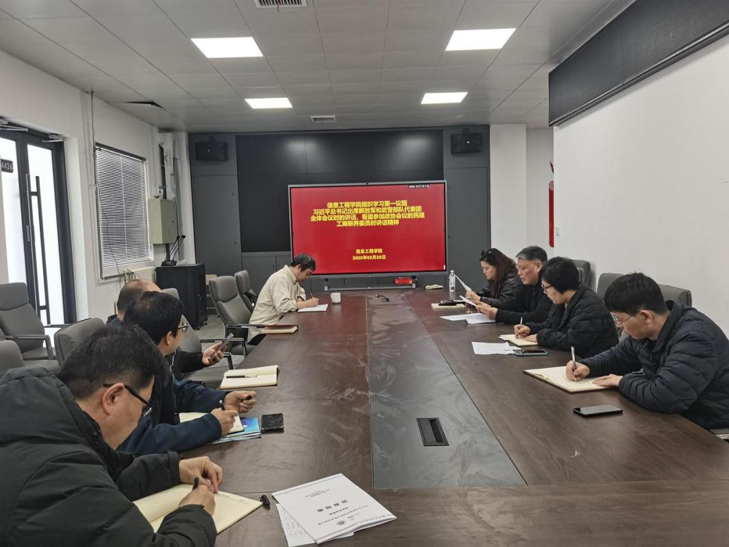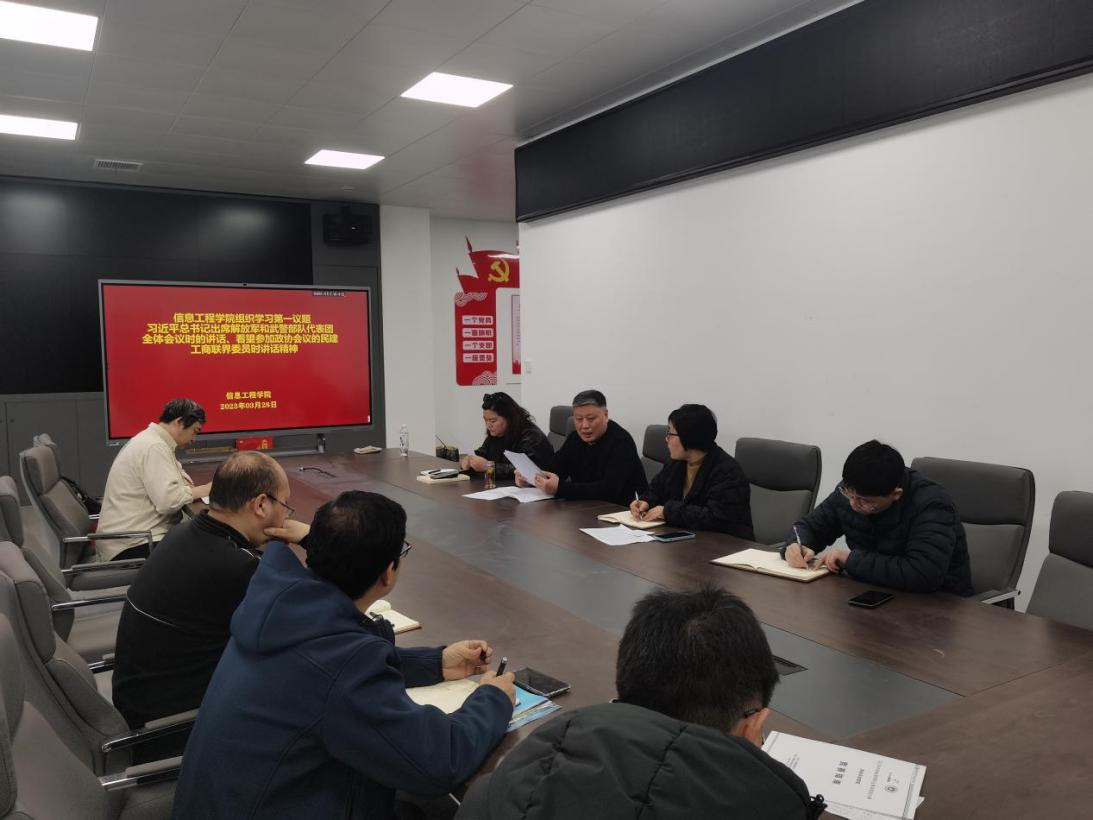 3月28日信息工程学院组织全体教职工开展政治学习,本次主要学习和领会《习近平在学习贯彻党的二十大精神研讨班开班式上发表重要讲话》《习近平在出席解放军和武警部队代表团全体会议时的讲话》《习近平在参加江苏代表团审议时的讲话》《习近平看望参加政协会议的民建工商联界委员时的讲话》文件内容和精神。