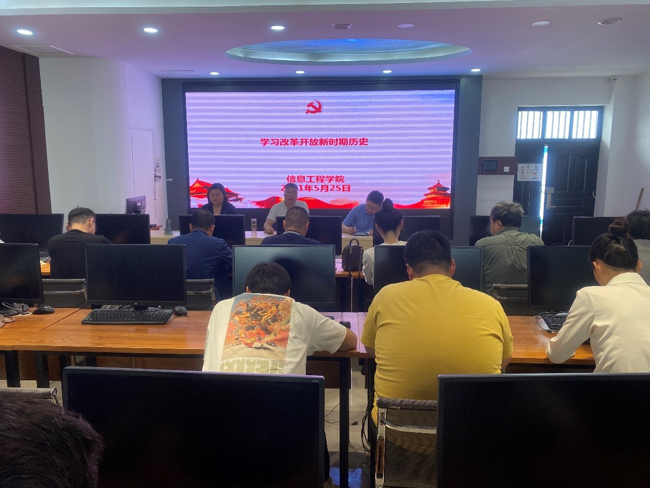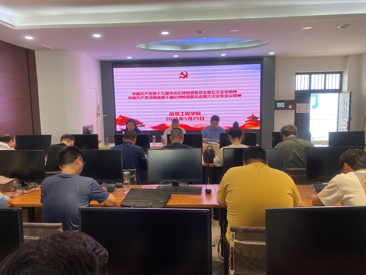 5月25日信息工程学院组织全体教职工在SY4405C开展政治学习。本次学习由党总支副书记李晓娟主持,深入学习中国共产党第十九届中央纪委第五次全体会议精神。