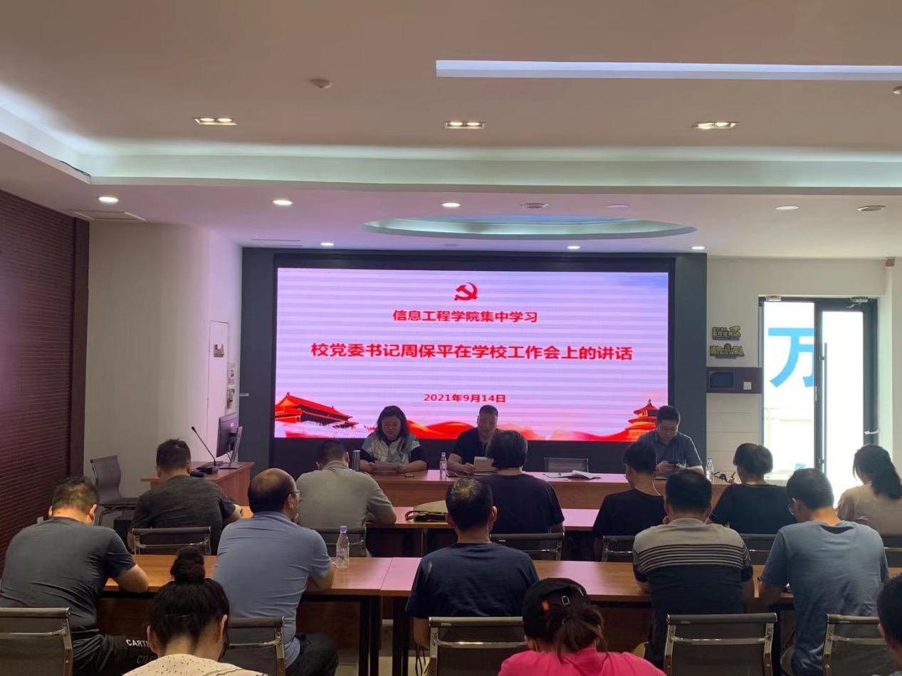 9月7日信息工程学院组织全体教职工在SY4405C开展政治学习,本次会议由党总支副书记李晓娟主持。