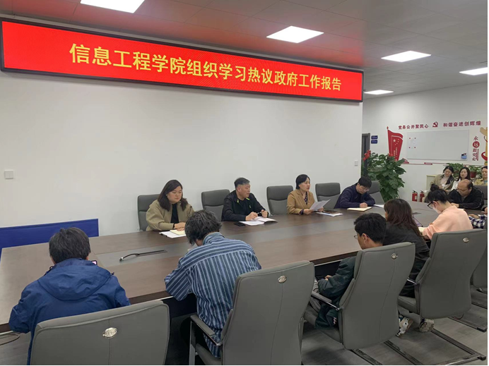 3月7日信息工程学院组织全体教职工开展政治学习,本次主要学习和领会国务院总理李强代表国务院向十四届全国人大一次会议作政府工作报告和《习近平总书记在学习贯彻党的二十大精神研讨班开班式上重要讲话》精神。