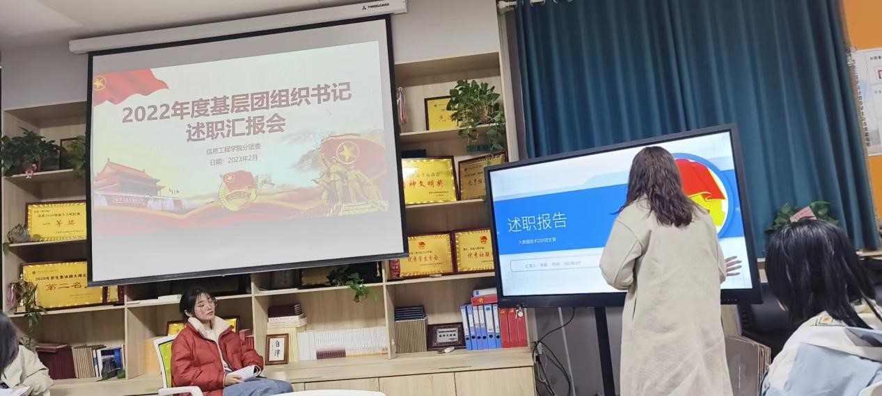 为贯彻落实团中央《关于印发<基层团组织书记述职评议考核暂行办法>的通知》精神和全面从严治团要求,激发基层团组织活力,提高工作部署的落实成效,同时为强化团组织书记抓团建工作的主体责任,加强基层团建工作的规范化建设。信息工程学院于2023年2月28日在4409B1举办基层团组织书记述职汇报会,本次参加会议的人员有信息工程学院分团委何昕老师以及所有各班团支部书记。