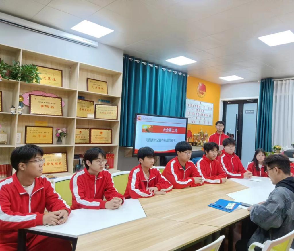 为深入学习贯彻二十大精神,引导广大青少年坚定不移听党话、跟党走,强化入团教育,2023年4月21日信息工程学院在SY4409B1召开2023年上半年新发展团员入团仪式。信息工程学院分团委何昕老师和新老团员参加本次活动,会议由何昕老师主持。