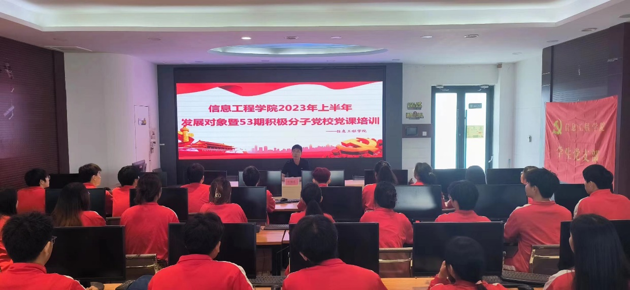为学习贯彻习近平新时代中国特色社会主义思想和党的二十大精神,进一步加强党校学员的政治素养和党性修养,信息工程学院于2023年5月17日下午14:00在SY4405C教室开展第53期入党积极分子暨2023年上半年发展对象党校党课培训,本次党课由信息工程学院副院长朱曙光主讲,全体党校学员参会。