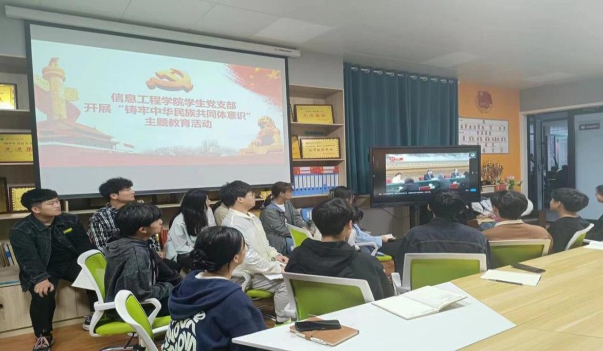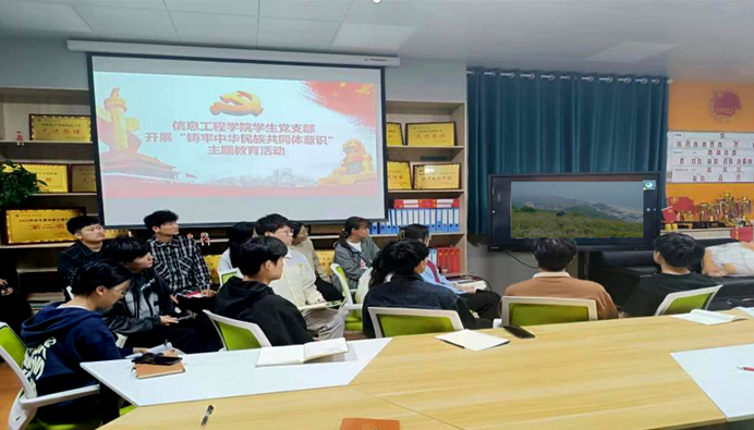 为全面贯彻学习党的二十大精神和习近平总书记关于加强和改进民族工作的重要思想,信息工程学院学生党支部开展“铸牢中华民族共同体意识”主题教育活动,并观看有关视频,学习习近平总书记在十三届全国人大五次会议内蒙古代表团审议时的讲话等相关资料。