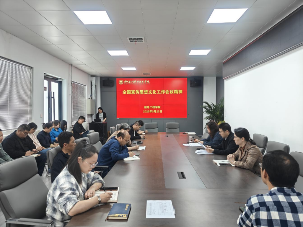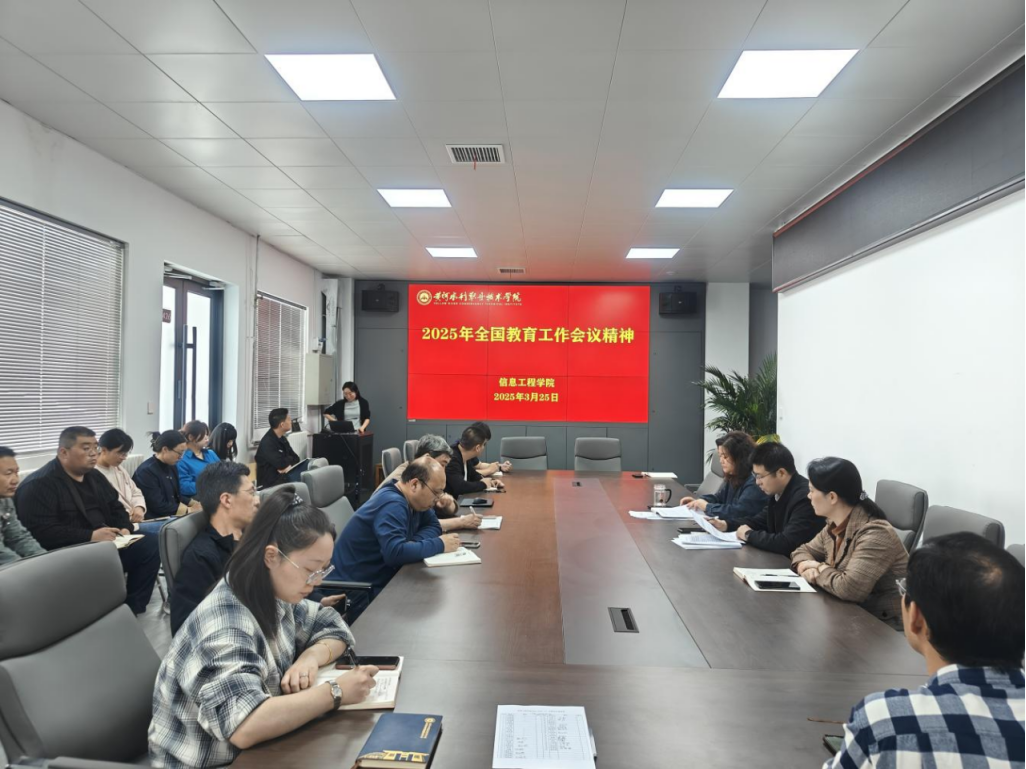 2025 年 3 月 25 日,信息工程学院在实训楼SY 4426 开展集中政治理论学习活动,会议由信息工程学院党总支书记李晓娟主持,全院教职员工参加。