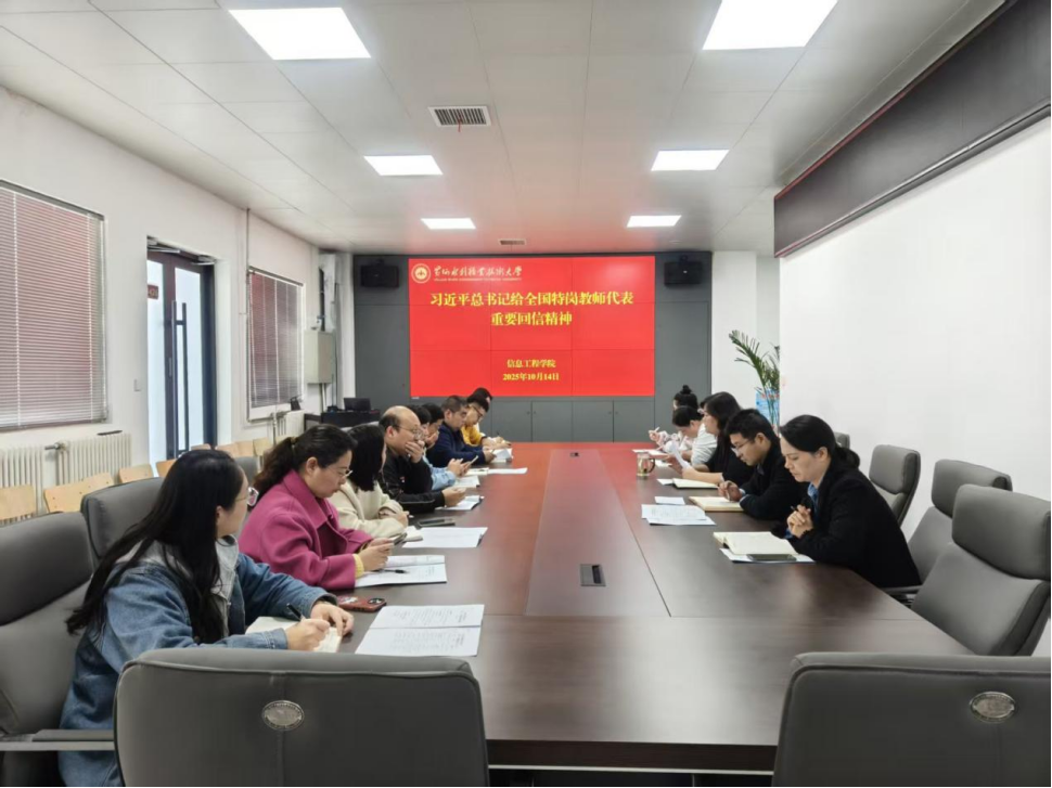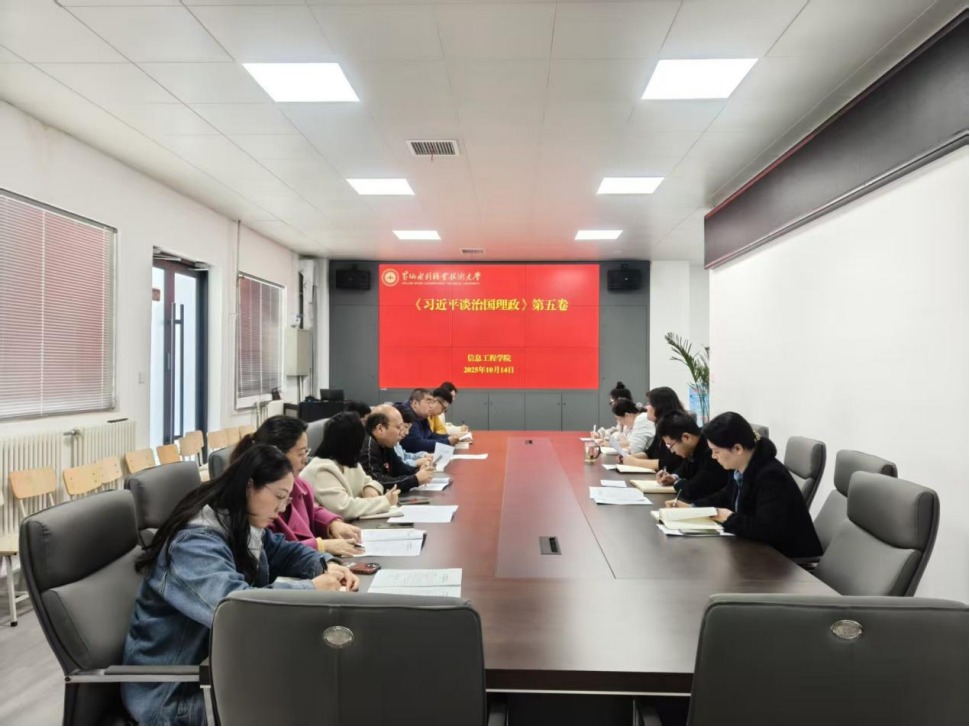 为持续深入学习贯彻习近平新时代中国特色社会主义思想,进一步贯彻落实习近平总书记关于教育的重要论述精神,10月14日,信息工程学院在SY4426会议室组织开展教职工专题学习活动,集中传达学习《习近平谈治国理政》第五卷和习近平总书记给全国特岗教师代表重要回信精神,切实强化教职工对党的创新理论的政治认同、思想认同、理论认同、情感认同,引导教职工着力提升思想政治素养和教育教学能力,为推进教育事业高质量发展提供有力支撑。