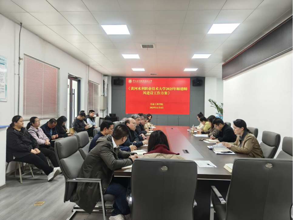 为贯彻落实《黄河水院2025年下半年政治理论学习及思想道德教育计划》学习要求,11月4日,信息工程学院在SY4426会议室组织召开教职工专题学习会议,集中传达学习《黄河水利职业技术大学教师师德失范行为负面清单及处理办法(试行)》(黄水党〔2025〕16号)和《黄河水利职业技术大学2025年师德师风建设工作方案》,引导全院教师准确把握师德师风建设的核心要求和具体内涵,切实不断提升学院师德师风建设水平。