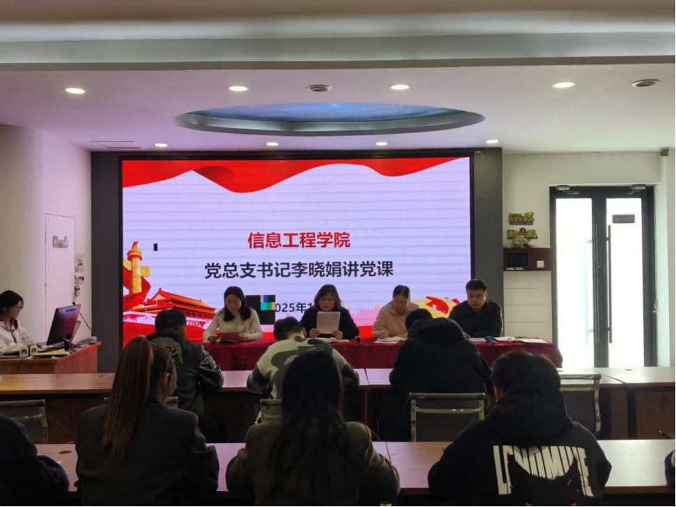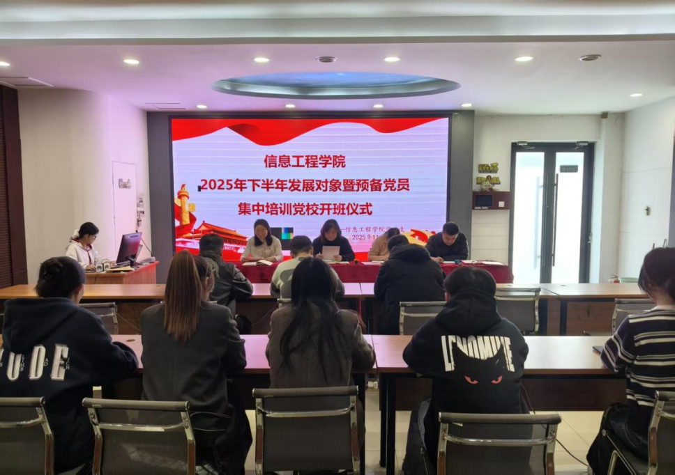 11月11日下午,信息工程学院2025下半年发展对象暨预备党员党课培训班开班仪式在4实训楼4405C举行。学院党总支书记李晓娟、副书记武琳琳、办公室主任韩欢乐、学生党支部书记李翔及全体辅导员出席,2025下半年发展对象暨预备党员参加。仪式由李翔主持。