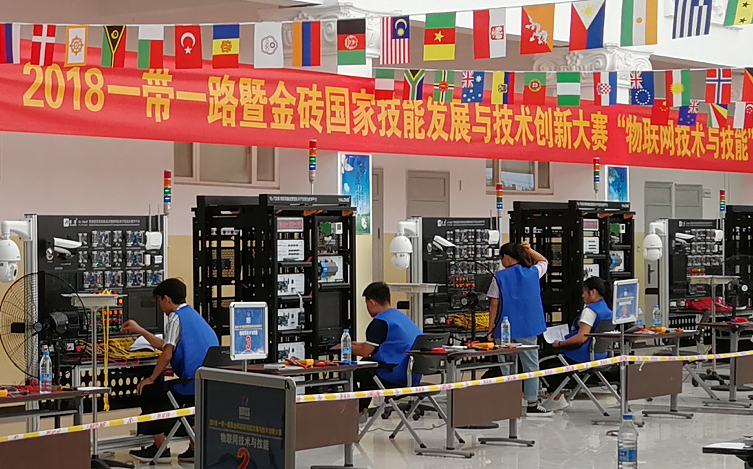 9月4日—8日,由中国政府及金砖国家支持参与、金砖国家工商理事会(BRICS BC)主办的“2018年一带一路暨金砖国家技能发展与技术创新大赛”在河北廊坊职业技术学院举行。我校派队参加了“物联网技术与技能”赛项荣获一等奖,并获得了去南非参加国际总决赛的资格。
