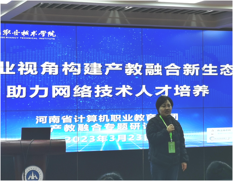3月23日,在我校承办的河南省高等职业教育技能大赛网络系统管理赛项举行之际,作为河南省计算机职业教育集团理事长单位,我校邀请中锐网络公司等企业代表以及来自全省50多所高职院校的专业带头人、骨干教师组织召开了网络技术专业产教融合专题研讨会。
