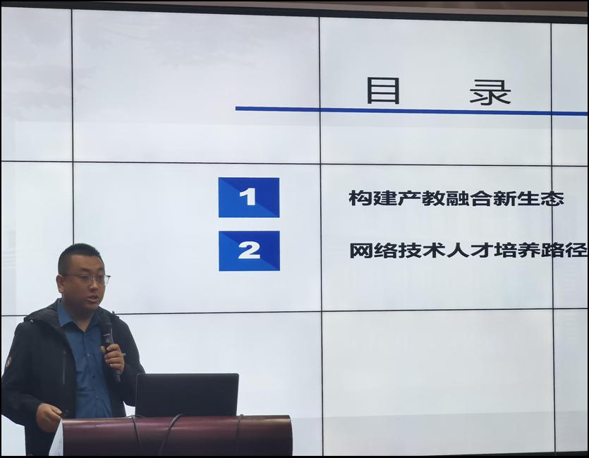 会上,信息工程学院院长丁爱萍教授首先代表学校对参加会议的各位领导和老师表示热烈的欢迎,希望通过本次活动加强各院校之间一起分享专业建设经验,深入交流岗课赛证模式的技能人才培养方案,共同推进网络专业建设。本次比赛技术支持单位中锐网络北京分公司产教融合总监逯小博受邀以企业视角分享了网络技术专业产教融合人才培养的实践探索。最后,参会的企业代表和老师就网络技术专业产教融合、人才培养等方面进行了深入研讨,分享产教融合实施经验,交流各自在实施上困境和亮点,并针对当前网络专业发展的一些方向进行了探讨。