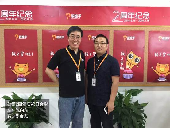 在2015年8月,受原阿里巴巴云计算研发总监、原搜狐视频首席技术官、跟谁学公司联合创始人兼C端事业部总裁江潮先生的邀请,加盟跟谁学公司,担任后台产品负责人。