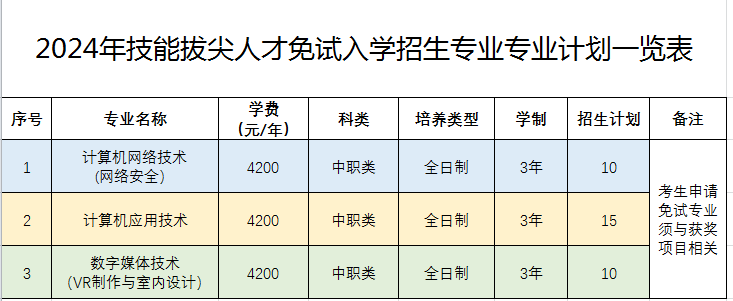2024年技能拔尖人才免试入学招生专业专业计划一览表(信息工程学院)