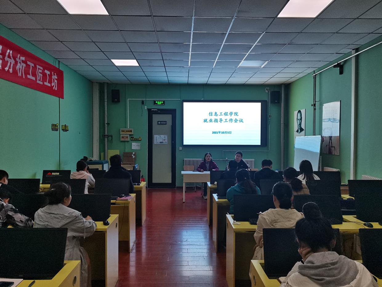 2021年10月5日,信息工程学院顶岗实习指导教师在SY4405实训室召开关于毕业生就业工作会议,会议主要讨论了针对就业困难学生的帮扶指导工作及加强对拟专升本学生的毕业设计指导工作的内容和要求,会议由曾院长主持。