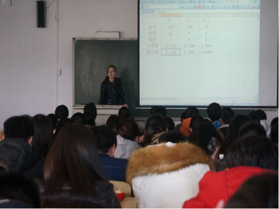 在期末来临之际,为端正考风考纪。我系于12月17日13:30时,分别在JX6201和JX2302教室召开了考前纪律教育大会,会议分别由14级辅导员张瑞青和15级辅导员蒋晓絮主持,14级全体学生和15级全体学生参加了此次会议。