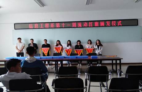 5月22日13点30,信息工程系在实训楼5508会议室举行第十一周优秀宿舍流动红旗颁发仪式。此次表彰仪式是为了加强对寝室卫生的管理,改善宿舍环境卫生。