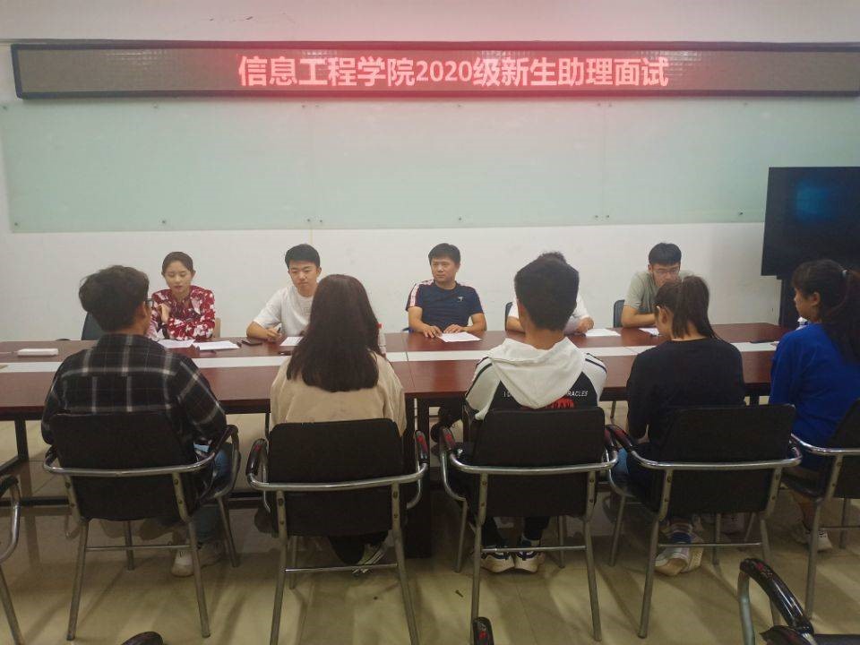 9月26日晚,信息工程学院在SY5508召开2020级新生助理面试工作,由19级辅导员孙远灿、陈幼菲老师以及院学生会负责人担任面试考官。