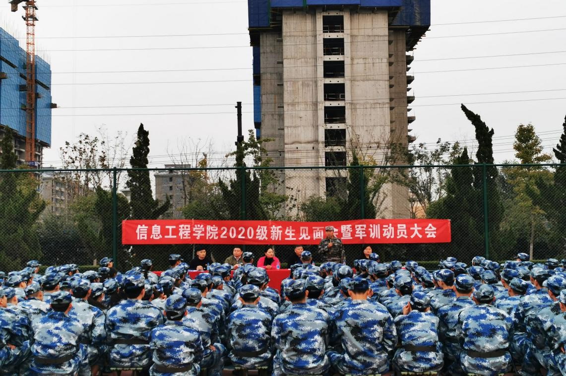 1018日下午,信息工程学院2020级新生见面会暨军训动员大会在东南篮球场举行。院党总支书记罗朝峰、院长丁爱萍、党总支副书记李晓娟、副院长曾赟、分团委负责人何昕,2020级新生辅导员和带训教官以及2020级全体新生参加,本次大会由何昕主持。