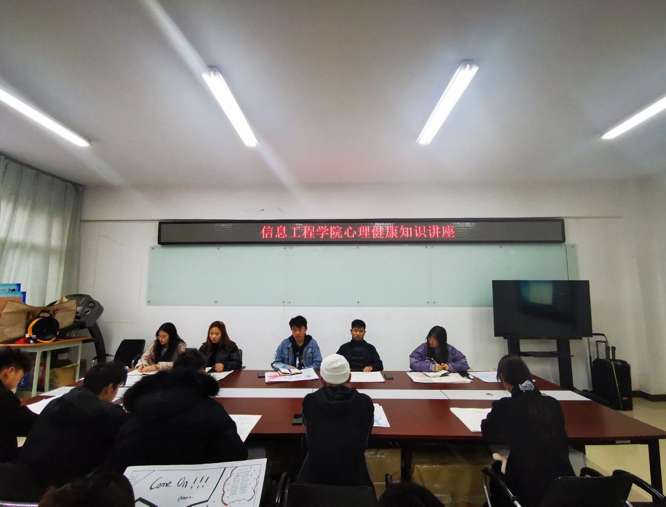 11月18日中午,信息工程学院大一、大二辅导员组织全体学生在JX2203/2302/2401,召开心理健康教育主题班会。会上,各辅导员从心理健康的含义谈起,针对大学生存在的心理问题,从大学生如何应对挫折、心理承受能力;如何保持良好的情绪;如何培养磨砺优良的意志品质;如何树立正确的恋爱心态等几个方面,通过一个个典型案例的分析帮助学生普及心理健康常识,帮助学生解决心理困惑,提高自我教育的积极性、主动性,引导学生充分认识心理健康对自身发展的重要性,学会心理调适的基本技巧,营造积极向上的心理氛围,促进学生全面发展和健康成长。