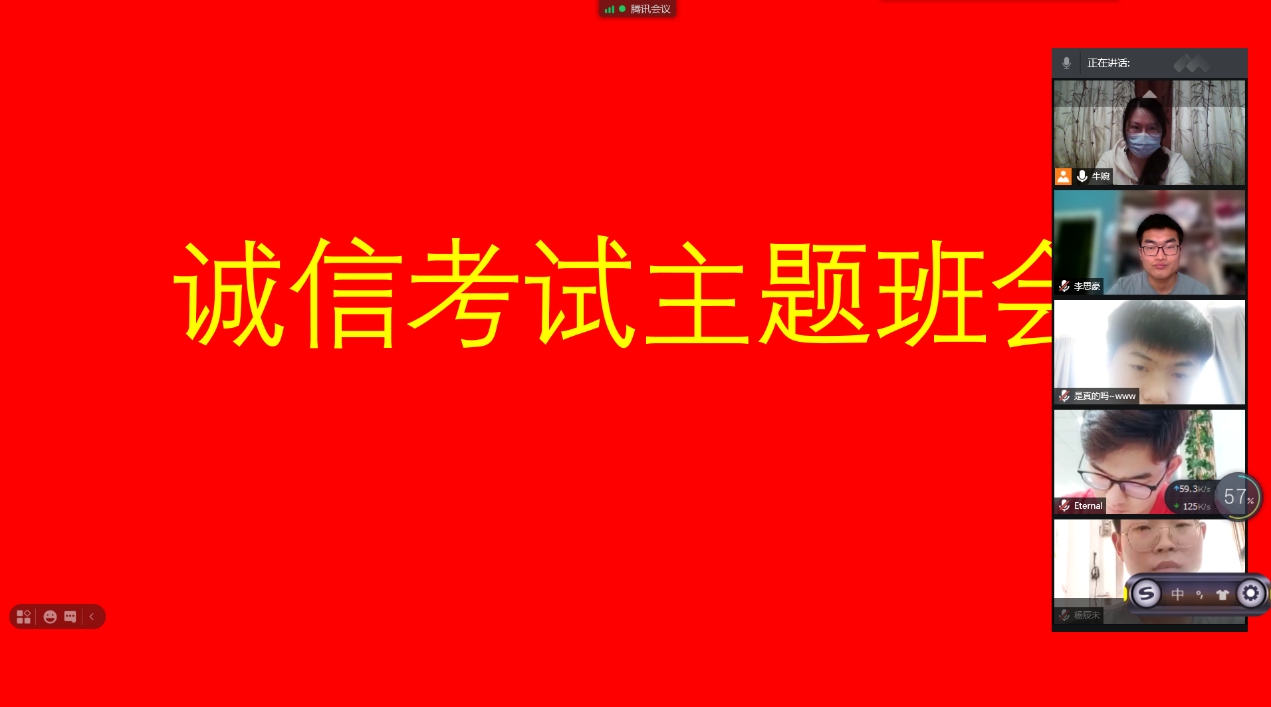 信息工程学院2018级辅导员牛婉、李苗老师于5月29日至30日先后召开诚信考试线上主题班会。班会上,辅导员老师鼓励同学们放平心态,沉着应考,调整好饮食作息习惯,以健康的身体状态应对考试。同时也指出诚信是立身之本,叮嘱考生们诚信应考,诚实做人。并向同学们强调,考试作弊入刑,不要以身试法。