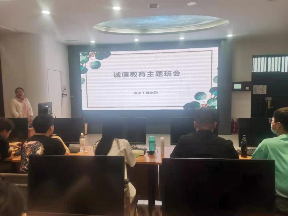 5月11日,信息工程学院辅导员组织2020、2019级全体学生在实训楼4405C\4405B2,2018级辅导员在线上组织学生分别召开了以“诚信教育”为主题的班会活动。