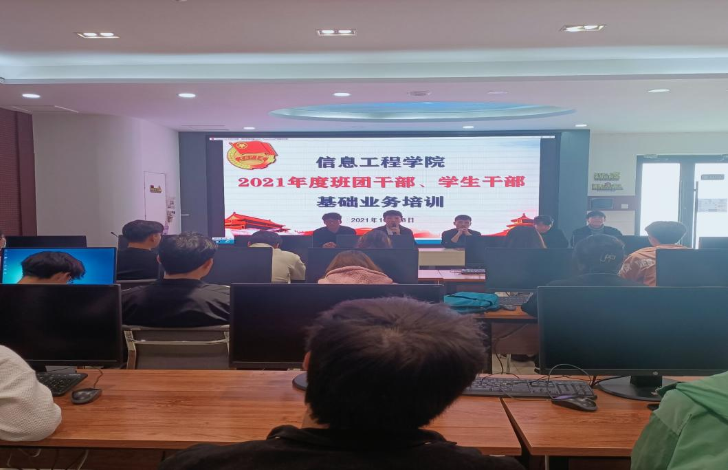 10月28日,信息工程学院在实训楼4405c举办2021年度团学干部培训会议。院分团委负责人何昕老师、团学组织副部长以上干部、各班级班长、团支部书记参加本次会议。培训会上,何老师围绕围绕“责任、义务、担当”对学生干部进行了专题培训。本次活动的开展有利于各位学生干部在接受培训后能够更好的履行自己的责任与义务,并升华个人思想,能够有全新的精神面貌。