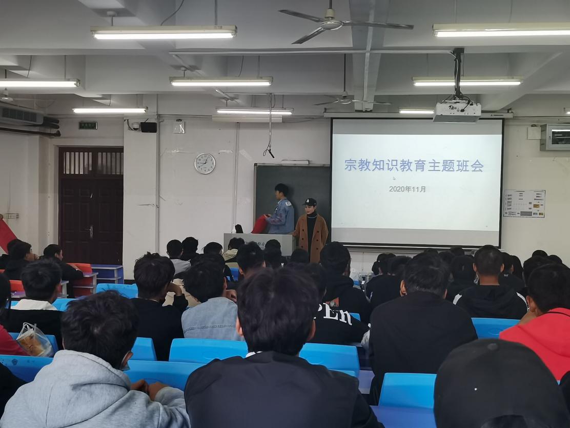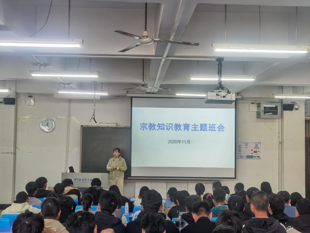 11月24日上午,信息工程学院大一大二辅导员组织全体学生在JX3202/3301/3303召开宗教知识教育主题班会。