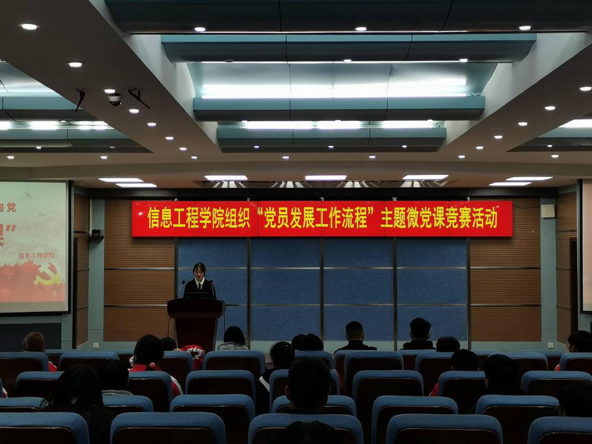 11月23日,信息工程学院在SY3301举行“党员发展流程”主题“微党课”演讲比赛,分团委负责人何昕和19级辅导员孙远灿出席活动,院全体团学干部及48期入党积极分子参加,本次活动由程瑞洁同学主持。本次活动以“中国共产党发展党员工作流程”为主题,通过实际的学生党支部教育活动,使同学们深入学习中国共产党发展党员工作流程,了解如何成为一名优秀的共产党员。