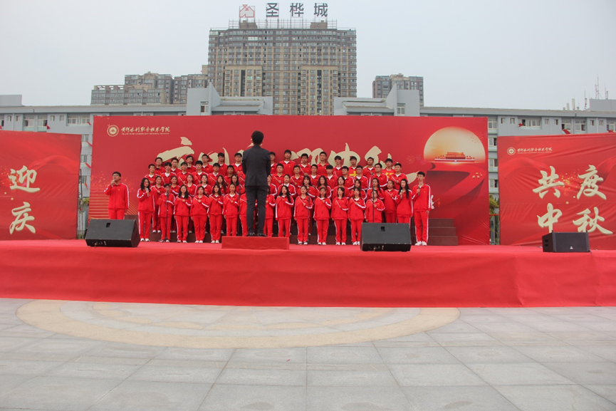 101日下午17时整,学校扬帆广场开展“庆国庆,迎中秋,弘扬黄河文化,传承黄河精神”合唱活动。12个学院和校艺术团合唱队带来的合唱展演在扬帆广场拉开帷幕。师生们一起观看了展演,展演共分为祝福祖国、强军报国、中流砥柱、展望未来等4个篇章。学子们意气风发、歌声嘹亮,唱出了自豪与骄傲,在《歌唱祖国》《我和我的祖国》《国家》等歌曲的深情演绎中,全校学生共同欢庆国庆、中秋佳节的到来。在一曲《今天是你生日》合唱之后,主持人特意邀请101日当天生日的学子们一起上台,与大家共同分享生日感想。校党委书记周保平、校长祝玉华还上台为当天生日的学子切蛋糕、发蛋糕。大家一起为这些学子送上生日祝福,也一起祝福祖国母亲生日快乐。最后,现场全体人员齐唱《黄河水利职业技术学院校歌》,在嘹亮的歌声中,本次“庆国庆 迎中秋 我陪学生过双节”系列活动顺利拉上帷幕。