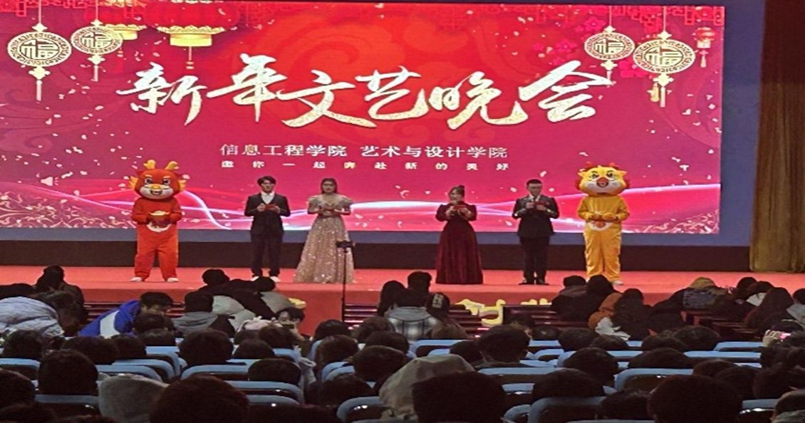 1月5日,信息工程学院在大学生活动中心举办“心聚信息 梦启新程”新年文艺晚会。副校长刘守义、纪委书记刘许亮,学院党总支书记李晓娟、院长吕振雷与艺术与设计学院党总支书记华雷、副院长鄢彬彬出席晚会。活动伊始,开场舞《一笑江湖》以其精彩的表演和激情四溢的舞蹈,成功地让观众们沉浸在晚会的氛围中。接下来,诗意之作《梨花又开放》的演出更是让观众们将自己完全融入到晚会中。在互动环节,抽取幸运观众进行“砸金蛋”活动,整个晚会洋溢着欢声笑语。此次晚会在传统歌曲《难忘今宵》中圆满结束。又是一年新气象,希望信息工程学院和艺术与设计学院学子能更上一层楼!