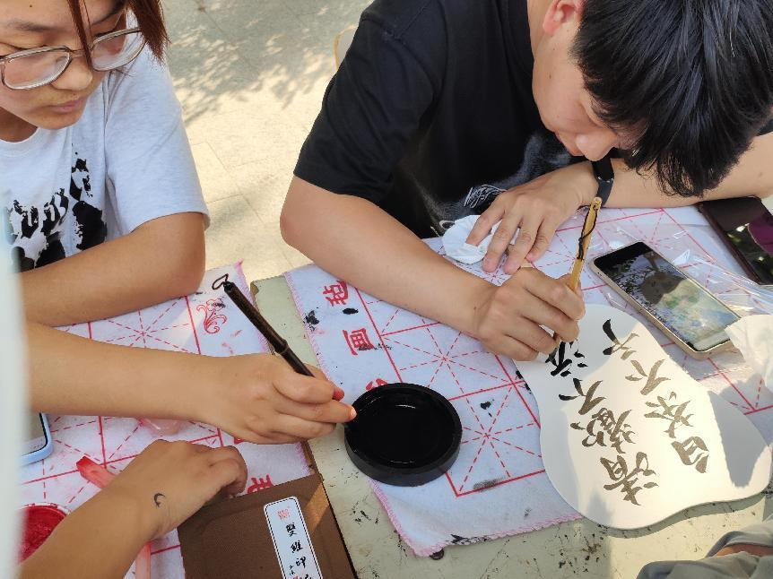 活动伊始,由万物皆可咕咕社负责人霍佳宝同学宣布本次活动正式开始并宣读本次活动目的,并讲解本次活动规则及注意事项。接着由文轩书法协会的同学对全体同学进行一定的教学,使同学们对书法有一定的认识和了解,同学们练习后进行漆扇制作书写。活动结束后,进行评分和颁奖仪式,为参与者带来满满的成就感和回忆,也通过本次活动加强了同学之间的联系。