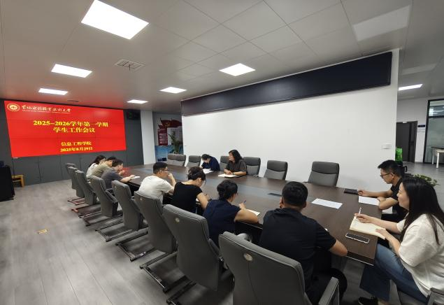 8月30日,信息工程学院在4号实训楼4426组织召开新学期学生工作会议,党总支书记李晓娟、副书记武琳琳以及全体学工人员参加本次会议。会上,李晓娟对学工队伍提出五点要求:一是抓好主责主业,筑牢育人主阵地;二是抓好日常管理,坚守安全底线;三是抓好学生干部队伍建设,切实发挥作用;四是抓好党团组织建设,巩固战斗堡垒作用;五是抓好优秀典型,打造工作亮点特色。武琳琳总结了上学期的学生工作,并根据安排布置新学期学生工作。