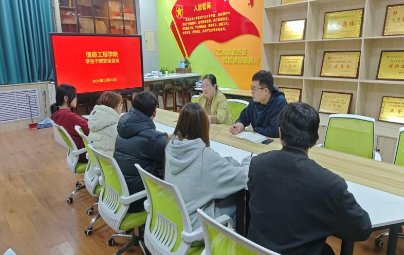 10月29日,信息工程学院于4号实训楼4409B1召开辅导员工作例会,党总支副书记武琳琳主持,全体辅导员参会。会议部署落实近期重点任务:一是加强秋冬季消防安全,辅导员要深入宿舍严查违章电器,教育学生做到人走断电;二是持续关注学生心理动态,做好普测后约谈与疏导;三是强化日常管理,严格课堂考勤、晚归外宿检查与请销假制度。此外,辅导员逐一汇报了重点关注对象动态,共同开展安全研判。