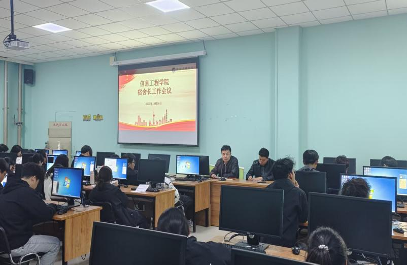 10月30日,信息工程学院在4号实训楼4407A2教室组织召开25级宿舍长工作会议。院学工办主任李翔、院宿舍专员张家兴以及全体辅导员参加本次会议。会上,张家兴就近期宿舍内务检查情况进行了通报。李翔对寝室长职责提出明确要求,强化责任意识,督促在卫生、纪律与安全中主动作为;号召大家合力推动宿舍管理向规范化、科学化、精细化发展,共同营造舒适、安全、和谐的住宿环境。