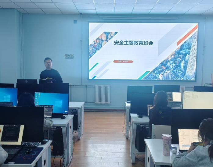 11月6日,信息工程学院辅导员王子昱在4号实训楼4407A1组织召开安全教育主题班会。班会上,王老师围绕交通安全、网络安全、消防安全等多个方面展开。在交通安全方面,通过观看交通安全教育视频让同学们了解了如何遵守交通规则;在网络安全方面,通过网络诈骗案例的讲解让同学们掌握了如何识别网络诈骗;在消防安全方面,同学们学习了如何正确使用消防器材、如何在火灾中逃生自救等常识。同时,也鼓励同学们在日常生活中要时刻保持警惕,注意自身安全,遇到危险情况要及时报警或向学院老师寻求帮助。