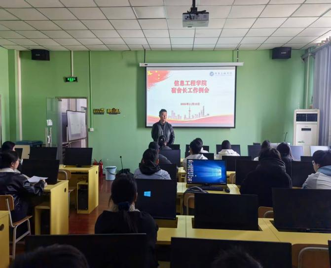 11月13日,信息工程学院辅导员张家兴在SY4405B2组织召开宿舍长工作会议。班会上,张老师结合近期发生的安全违纪事件,围绕用电规范、防火安全、宿舍卫生及网络行为规范等方面提出明确要求。要求宿舍长应切实履行监督责任,关注舍友日常生活状态,自觉远离不良生活习惯,共同强化用电安全意识,抓实抓细宿舍卫生清洁工作,筑牢校园健康防护屏障,保障我院学生在安全、整洁、文明的宿舍环境中安心学习、健康成长。